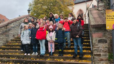 Am Dienstag fuhren wir mit der S-Bahn nach Oberursel. Dort hatten wir eine Stadtführung. Wir waren auf dem Kirchturm, an der Stadtmauer, in der Kirche und noch an vielen weiteren Orten, wie zum Beispiel dem Gefängnis. Dort haben wir festgestellt, dass Wilfried vergessen wurde. Er hatte ein Schild umhängen und auf dem Schild stand: „Ich wollte nicht bezahlen.“ Als wir nach Hause fahren wollten, ist die S-Bahn leider ausgefallen und dann mussten wir mit der U-Bahn nach Bommersheim fahren und von dort dann nach Stierstadt zur IGS laufen. Auf dem Weg sind auch schon ein paar Kinder nach Hause gegangen, weil wir fast an ihren Häusern vorbeigekommen sind.