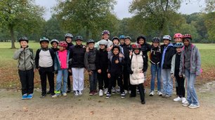 An einem verregneten Donnerstag machte sich die Sportklasse 6c trotz grauem Himmel und leichtem Regen auf den Weg zu einer ganz besonderen Radtour. Heute hieß es mal nihct Mathe, Bio und Englisch. Heute stand Sport auf dem Plan! Gemeinsam mit ihren Lehrerinnen Nuran Ceylan und Fabienne Stahl radelten die 18 Kinder voller Energie durch den Nidda Park, über den alten Flugplatz und schließlich bis nach Bad Vilbel.