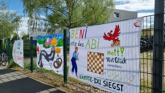 Die Aufregung und Vorfreude auf das Abitur an der IGS Stierstadt sind in vollem Gange und lassen die ganze Schule mit positiver Energie pulsieren. Am Montag wurden die Zäune des Schulgeländes von stolzen Familienmitgliedern mit Plakate voller guter Wünschen und motivierenden Sprüchen geschmückt, um ihren Kindern Mut zu machen. Es ist eine Zeit, die nicht nur von Prüfungsvorbereitungen geprägt ist, sondern auch von einer Atmosphäre der Unterstützung und des Zusammenhalts.