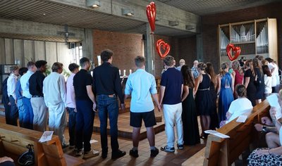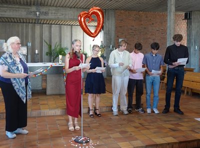 „Vertraue deinem Herzen!“ – unter diesem Motto stand der wunderschöne Abschiedsgottesdienst der 9. und 10. Klassen der IGS Stierstadt, der am Montag, den 30. Juni 2025 in der katholischen Kirche St. Sebastian gefeiert wurde.