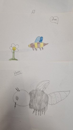 Doch nicht nur das Beobachten steht im Vordergrund. Die neuen Entdeckungen werden in kreativen Zeichnungen festgehalten, sodass die Welt der Bienen Stück für Stück auf Papier lebendig wird.