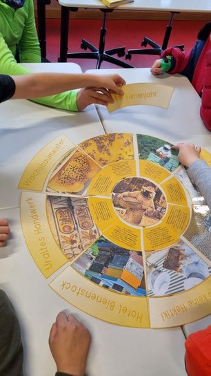 Mit großem Engagement lernen die Schülerinnen und Schüler spielerisch alles über die faszinierenden Lebensweisen der Honigbienen. Dabei wird geforscht, beobachtet und entdeckt: Mit Lupen und Mikroskopen untersuchen die Kinder die kleinen Insekten ganz genau und sammeln neue Erkenntnisse über deren Körperbau und Verhalten. Besonders spannend dabei: Viele Vorstellungen der Kinder verändern sich rasant! Haben Bienen wirklich nur vier Beine? Wie viele Segmente hat eigentlich ein Bienenkörper? Und wo genau haben Bienen überall Haare? Jede Beobachtung wirft neue Fragen auf – und jede Antwort eröffnet ein weiteres kleines Wunder aus der Welt der Bienen.