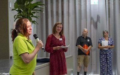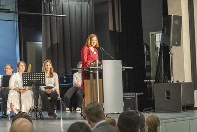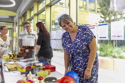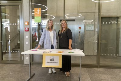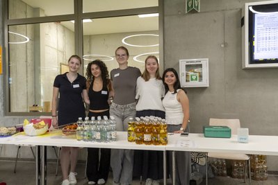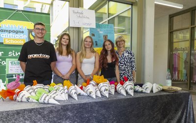 Einen schönen Beitrag leistete die Fair-Trade-AG, die die neuen Mitschülerinnen und Mitschüler auf ihre ganz eigene Weise begrüßte. Damit zeigten die engagierten Jugendlichen, wie aktiv und aufgeschlossen an unserer Schule gelernt und gelebt wird. Auch die Eltern wurden feierlich in die Gemeinschaft aufgenommen: Kathrin Dolgner und Claudia Wiedemann vom Schulelternbeirat richteten ein Grußwort an die neuen Familien. Sie betonten, wie wichtig die Mitwirkung der Eltern für das Schulleben ist, und luden zu reger Beteiligung ein. Im Anschluss an den offiziellen Teil gab es viel Gelegenheit zum Austausch. Die Gäste konnten sich an verschiedenen Infoständen umsehen: Harald Schuster vom Verein Windrose bot Unterstützung für Familien an und Bettina Galow stellte das bunte Nachmittagsangebot vor – und präsentierte zugleich den beliebten Schulhonig, frisch geerntet von den Kindern im schuleigenen Bienengarten. Unter dem Motto „Von den Großen an die Kleinen“ sorgte die Oberstufe für Snacks und Erfrischungen. Wer wollte, konnte sich bei der Fair-Trade-AG sogar eine faire Schultüte sichern. Viele Eltern nutzten zudem die Gelegenheit, gleich den Chip für das erste Mittagessen in der Mensa zu besorgen – ein praktischer Schritt für den Start in den neuen Alltag.