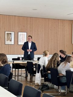 Ein wichtiger Teil seiner Arbeit ist die Mitwirkung an der Gesetzgebung. Sommer erläuterte den Schülerinnen und Schülern den dreistufigen Prozess der Gesetzgebung im Hessischen Landtag. Von der ersten Lesung über die Diskussion in den Fachausschüssen bis hin zur finalen Abstimmung im Plenum, jeder Schritt ist entscheidend für die Gestaltung der Landespolitik und erfordert eine aktive Beteiligung der Abgeordneten.