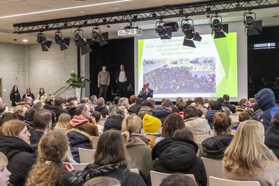 Am 6. Februar war es wieder so weit: Ab 15 Uhr öffnete unsere Schule ihre Türen und hieß zahlreiche Familien herzlich willkommen. Schon beim ersten Eröffnungsvortrag der Schulleitung zeigte sich die große Resonanz – die Aula war rappelvoll und die Vorfreude auf das Entdecken unserer Schule spürbar.