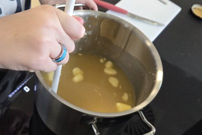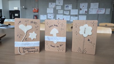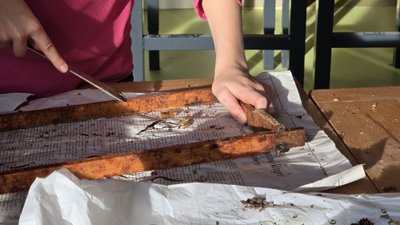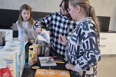 Parallel liefen bereits die Vorbereitungen für den Sommer: Rähmchen wurden von Wachs und Propolis befreit, Drähte nachgespannt und neu befestigt sowie frische Wachsplatten eingelötet. Natürlich durfte auch die kulinarische und kreative Arbeit nicht fehlen: Es entstanden Honig-Toffees, Honigplätzchen und liebevoll gestaltete Karten mit ausgestochenen Wachsformen.
