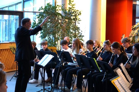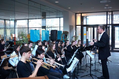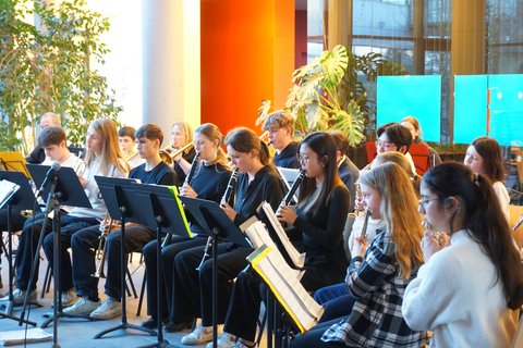 Den Auftakt des Abends bildeten die Fünftklässler, deren elegante Erscheinung und glänzende Instrumente bereits auf die Professionalität hinwiesen, die sie auf die Bühne bringen würden. Begleitet von ihrem Lehrer und Dirigenten Timo Ratz, eröffneten sie mit anmutigen Klängen den Abend und ernteten für ihre geübten Darbietungen wohlverdienten Applaus. Von klassischen Stücken wie Beethovens "Ode an die Freude" bis hin zu energiegeladenen Nummern wie dem "Hard Rock Blues" - das Publikum ließ sich von der Vielfalt der Darbietungen mitreißen. Herr Ratz, voller Stolz über die Leistung seiner Schützlinge, verkündete: "Ich bin so stolz auf unsere Neuzugänge, sie zeigen von Tag Eins großes Interesse an der Musik und haben in der letzten Woche auf Orchesterprobe viel geübt. Ich war auch etwas aufgeregt, nun übernimmt die Freude über diesen gelungenen Auftritt."