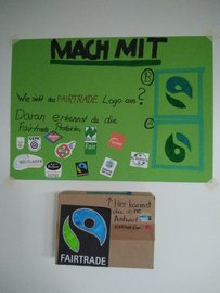 Auf dem Plakat gab es zwei Antwortmöglichkeiten, die im beigefügten Text erlesen werden konnte. Richtig war: FAIRETRADE heißt übersetzt GERECHTER HANDEL.